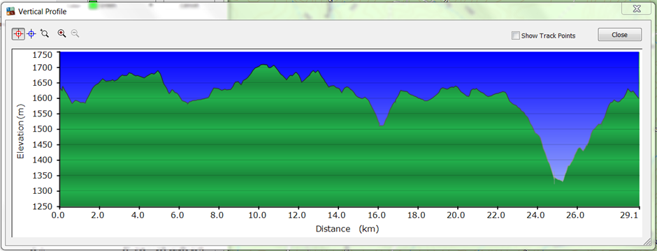 Farm Ridge Trail was grassy, covered in "hanger seeking" sticks, fallen trees and discomfort. The views were stunning though and as you can see from the pictures below an amazing down hill to the river. But with every down comes an up and this was a very, very big 3k up to the cars at Round Mountain. And for this up I wish I had gators with low, tough brush right at shin height.